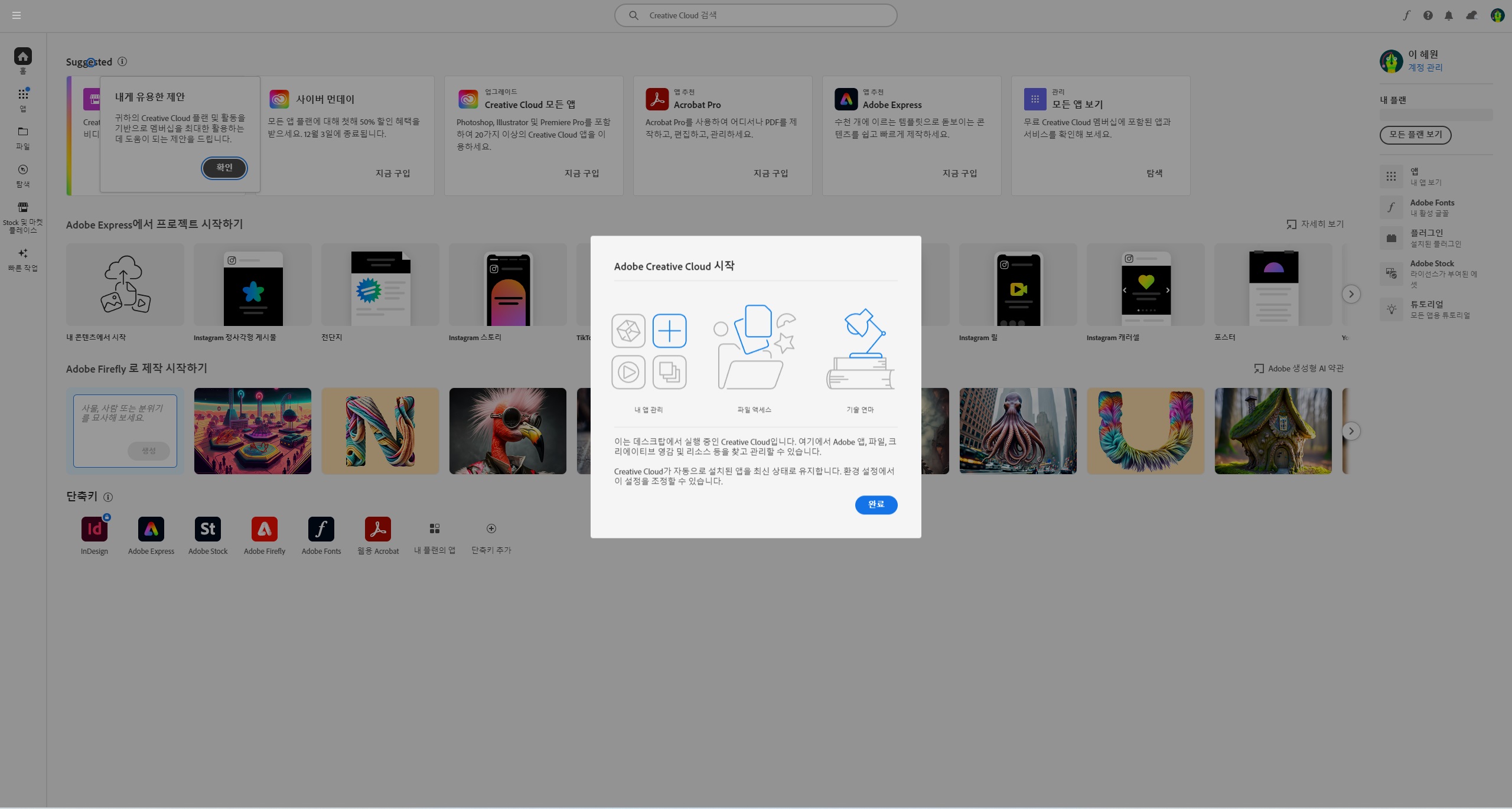 -어도비의 모든프로그램을 쓸 수 있는 플랜도 있고 프로그램을 개별로 구매할 수 있는 플랜도 있어서 선택이 가능합니다